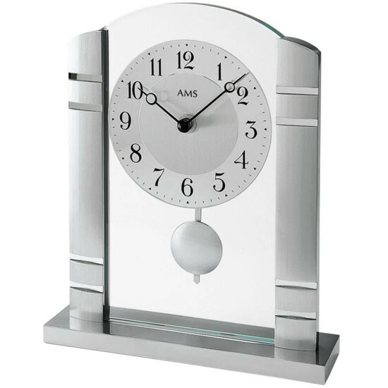 AMS 1118 Tischuhr Quarz mit Pendel silbern Metall mit Aluminium und Glas