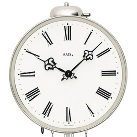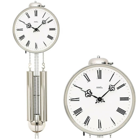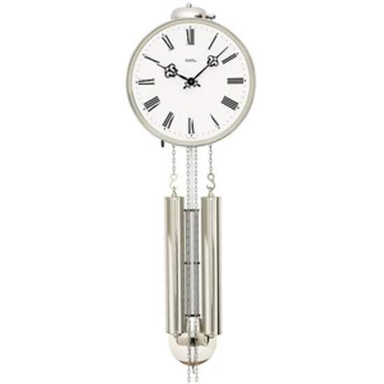 AMS 342 Wanduhr mit Pendel mechanisch silbern Frontreif aus Messing Pendeluhr