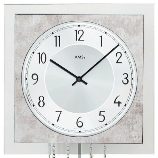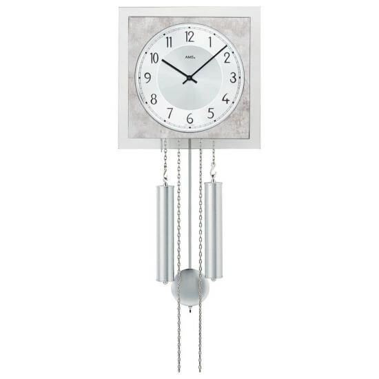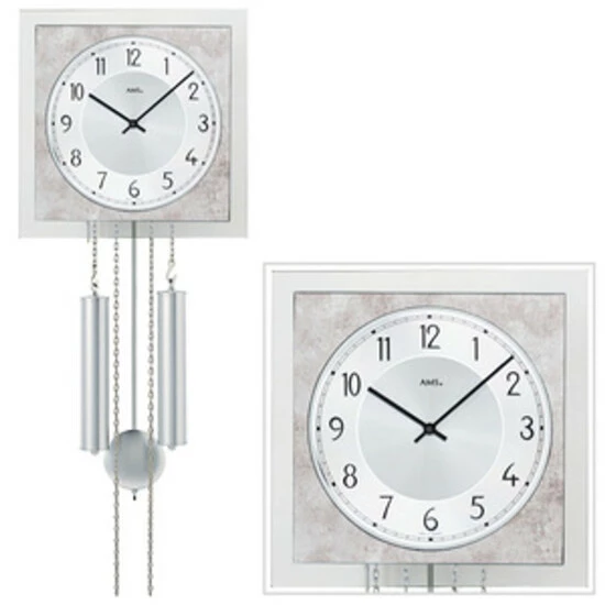 AMS 344 Wanduhr mit Pendel Pendeluhr mechanisch Abtik-Optik silbern mit Glas