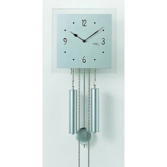 AMS 354 Wanduhr mit Pendel mechanisch silbern eckig Pendeluhr mit Aluminium