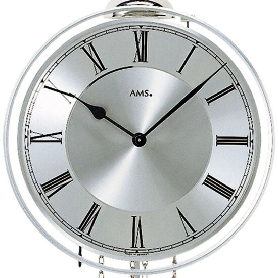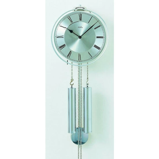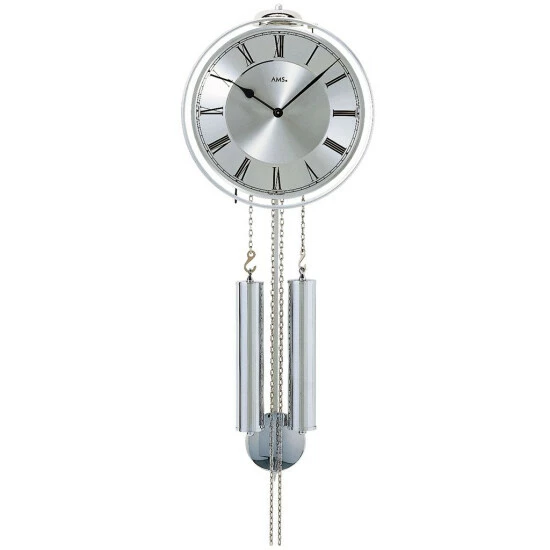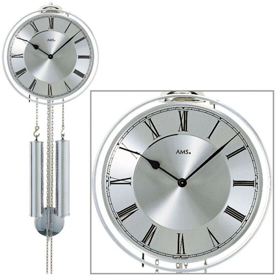 AMS 358 Wanduhr mit Pendel mechanisch silbern Pendeluhr mit römischen Ziffern