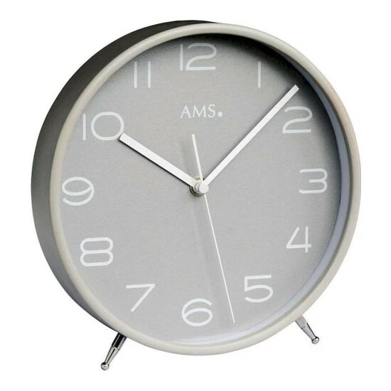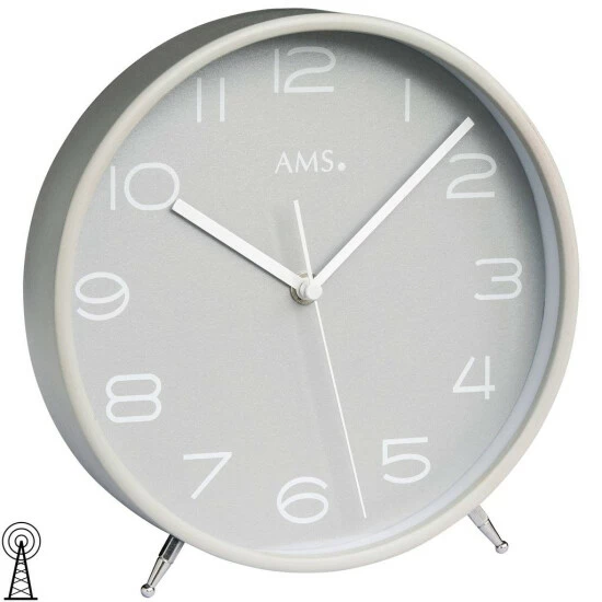 Tischuhr Funk AMS 5119 mit Funkwerk, Holzgehäuse silbergrau lackiert, bedrucktem Zifferblatt und Mineralglas