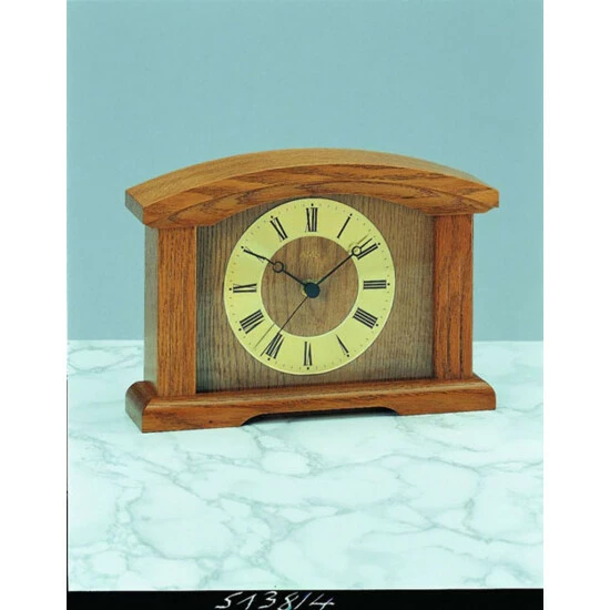 AMS 5138/4 Tischuhr Kaminuhr Funk Holz Eiche massiv mit Glas Funktischuhr