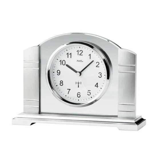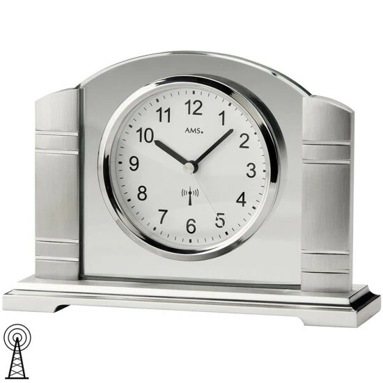 AMS 5142 Tischuhr Funk silbern Metall gebürstet mit Glas Funktischuhr