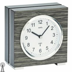 AMS 5154 Tischuhr Funk Holz Optik mit Aluminium