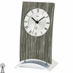 AMS 5159 Tischuhr Funk Funktischuhr Funkuhr analog mit Holzstruktur