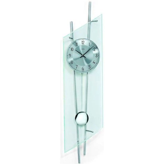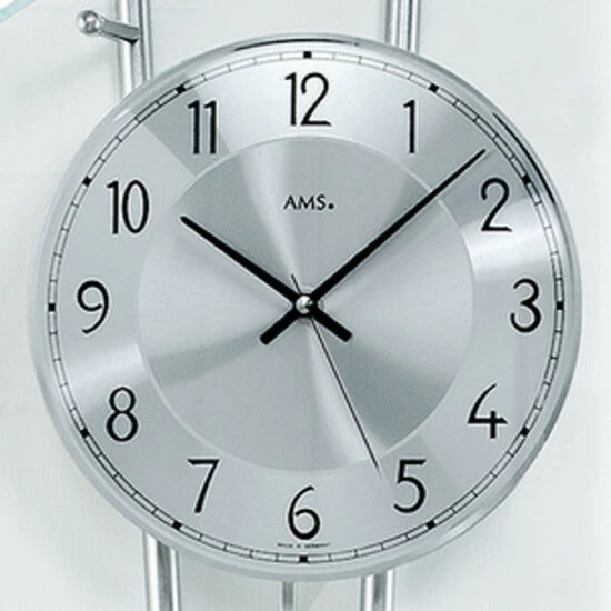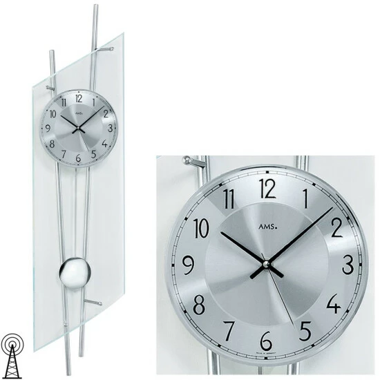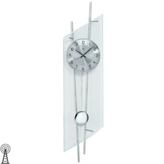 AMS 5200 Wanduhr Funk Funkwanduhr mit Pendel silbern modern Pendeluhr mit Glas