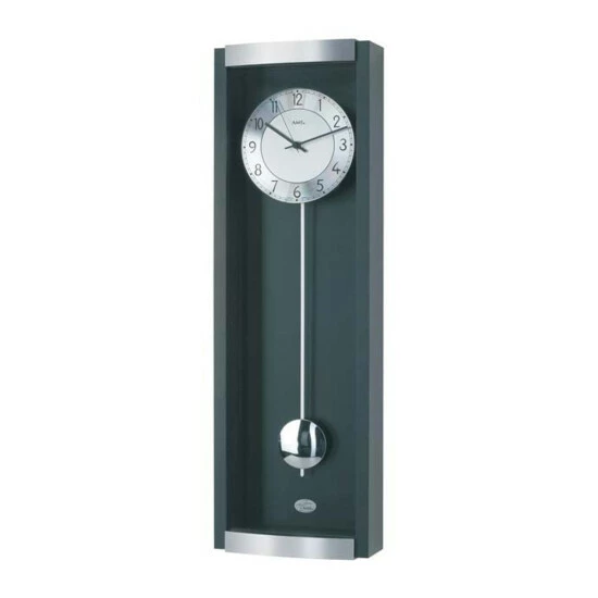 Funk-Wanduhr mit Pendel, Holzgehäuse schwarz mit Aluminium kombiniert, Höhe ca. 71 cm, Breite ca. 21 cm, Tiefe ca. 9 cm