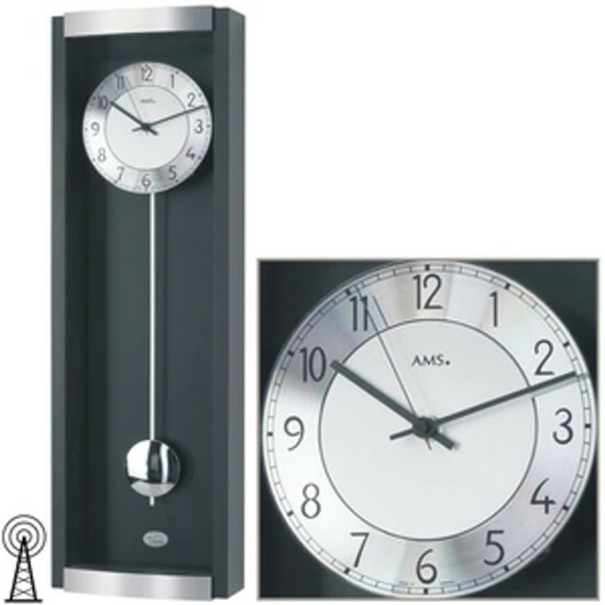 AMS 5285/11 Wanduhr Funk Funkwanduhr mit Pendel schwarz Pendeluhr mit Glas