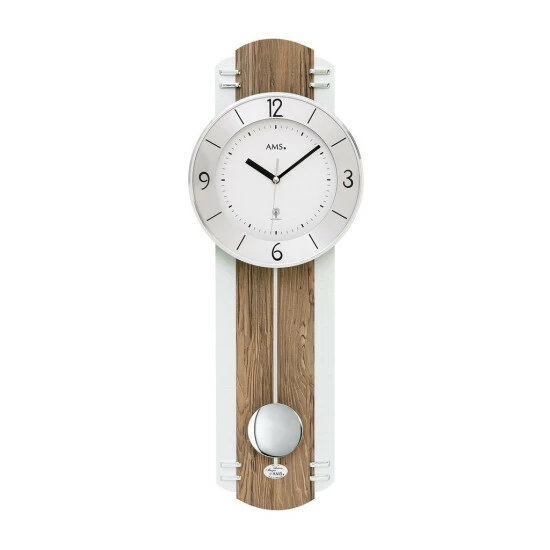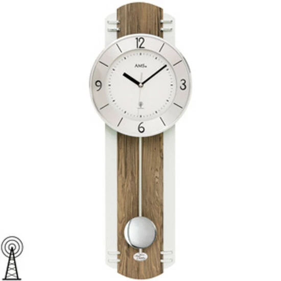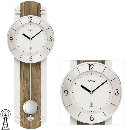 AMS 5292 Wanduhr Funk Funkwanduhr mit Pendel Pendeluhr Holz nussbaum farben