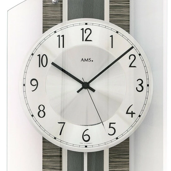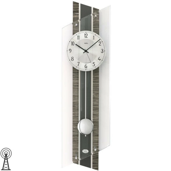 AMS 5300 Wanduhr Funk Funkwanduhr mit Pendel Fossilstruktur Pendeluhr