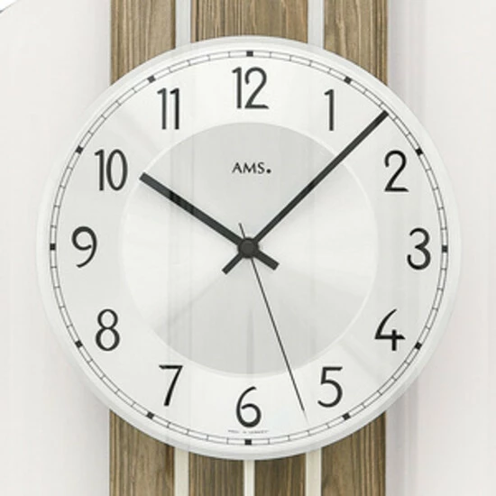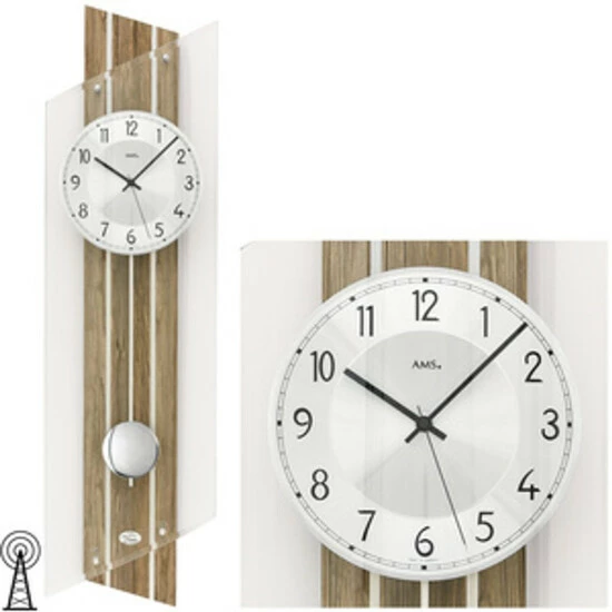 AMS 5302 Wanduhr Funk Funkwanduhr mit Pendel nussbaum farben Pendeluhr