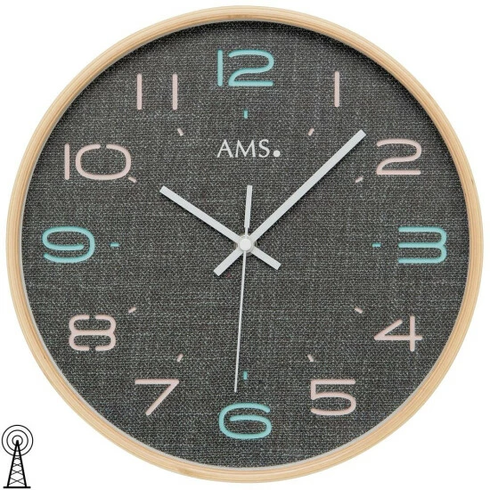 AMS 5513 Wanduhr Funk Funkwanduhr analog Holzrahmen natur anthrazit
