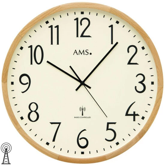 AMS 5534 Wanduhr Funk Funkwanduhr analog Holz Buche