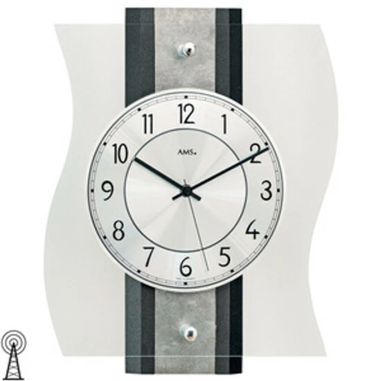 AMS 5538 Wanduhr Funk Funkwanduhr analog mit Glas geschwungen