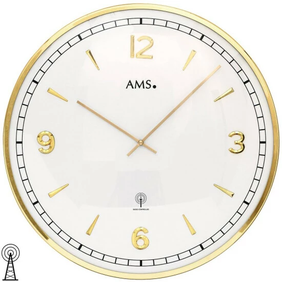 AMS 5609 Wanduhr Funk Funkwanduhr analog golden rund