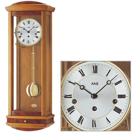 Neu ✔️ AMS 607/9 Regulateur Mit Pendel Holzgehäuse Kirschbaumfarben Lackiert 👍