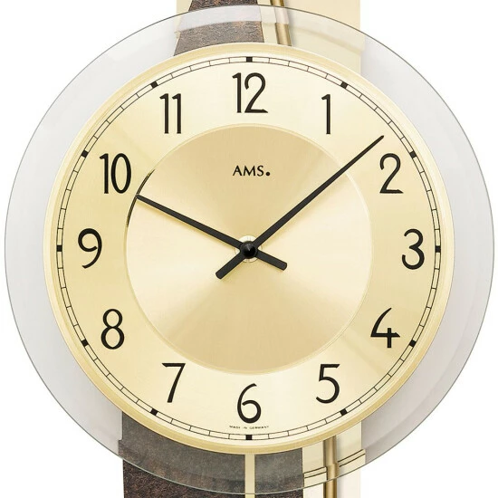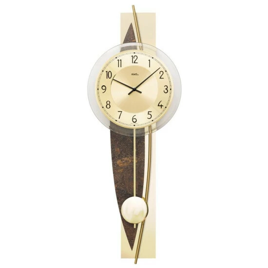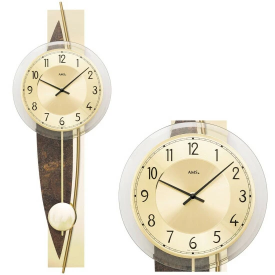 AMS 7453 Wanduhr Quarz mit Pendel Pendeluhr golden Naturstein Optik