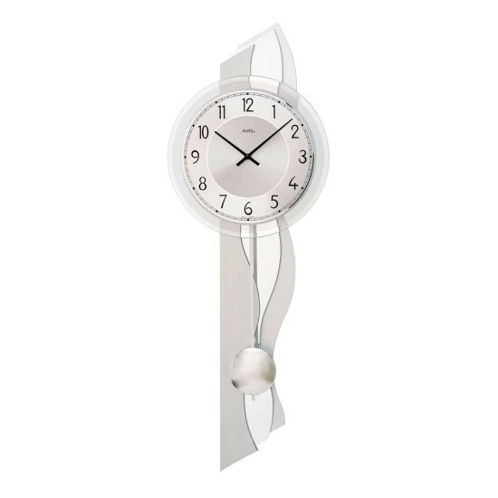 Diese Funk-Pendelwanduhr von AMS verschönert Ihr Zuhause und macht den Raum zu etwas Besonderem. Das silberfarbene Gehäuse dieser eleganten Uhr wurde aus Aluminium hergestellt. Pflegeleichtes Mineralglas mit einer analogen Anzeige und arabischen Ziffern auf einem silberfarbenen Ziffernblatt. Betrieben wird diese Funk-Pendelwanduhr mittels Batterie.