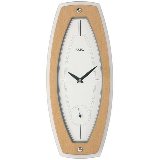AMS 9357 Wanduhr Quarz analog Holz buche farben mit Glas