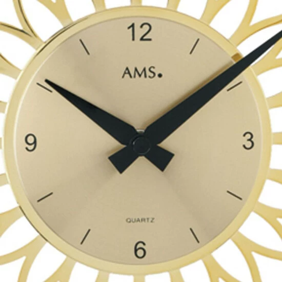 AMS 9359 Wanduhr Quarz analog Design BLÜTE golden