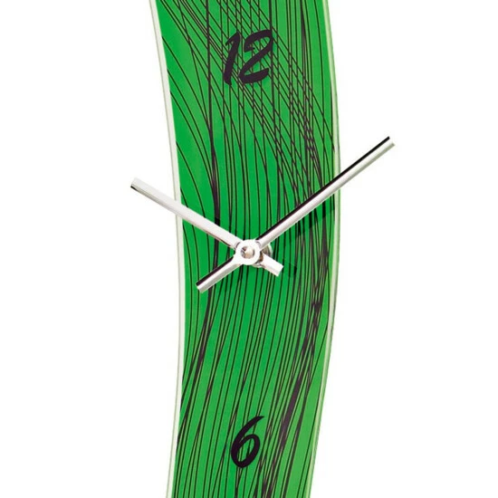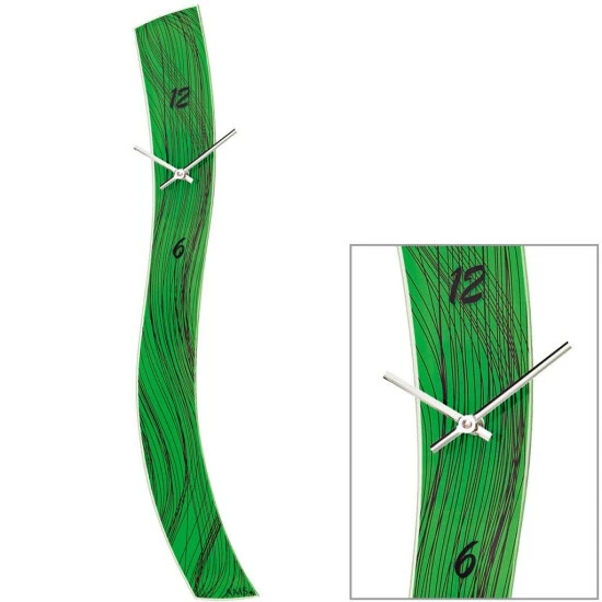 Quarz-Wanduhr, geschwungenes und bedrucktes Mineralglas, grün, Höhe ca. 74 cm, Breite ca. 12 cm, Tiefe ca. 6 cm