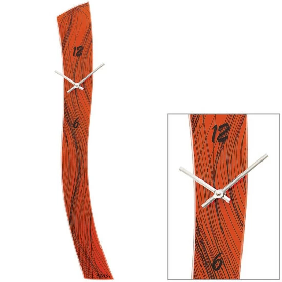 Angebote 🛒 AMS 9455 Wanduhr Quarz Orange, Geschwungenes Und Bedrucktes Mineralglas 🧨