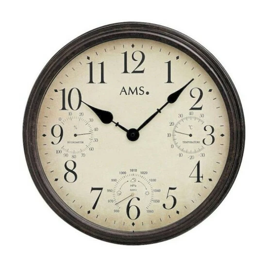 AMS 9463 Wanduhr Quarz analog rund vintage antik retro mit Thermometer