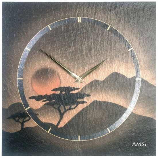Wanduhr Schiefer AMS 9515 mit Quarzwerk, Naturschiefer und Airbrush-Design