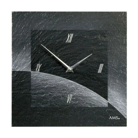 AMS 9518 Wanduhr Quarz Schiefer Naturschiefer Schieferuhr silbern