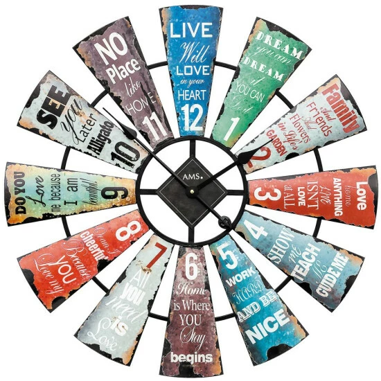 AMS 9531 Wanduhr Quarz analog bunt Metall vintage retro shabby antik