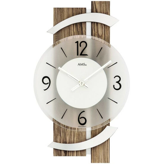 AMS 9545 Wanduhr Quarz analog modern Holz nussbaum farben mit Aluminium