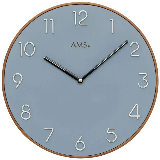 AMS 9564 Wanduhr Quarz analog Holz kirschbaum farben Zifferblatt blau