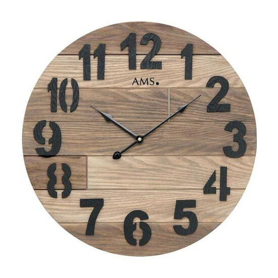 AMS 9569 Wanduhr Quarz analog Holz rund
