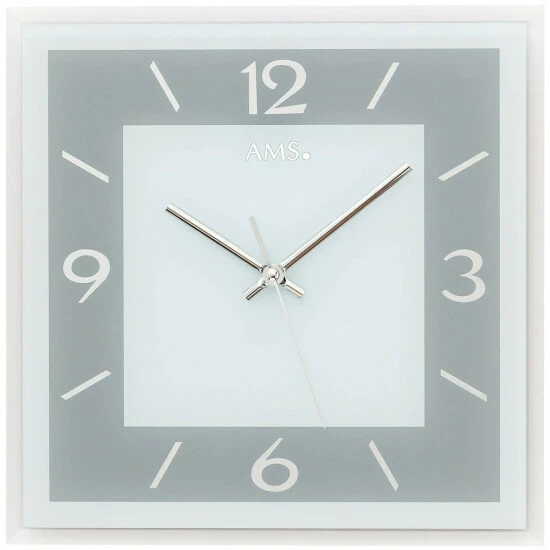 AMS 9573 Wanduhr Quarz analog grau eckig quadratisch mit Glas leise ohne Ticken