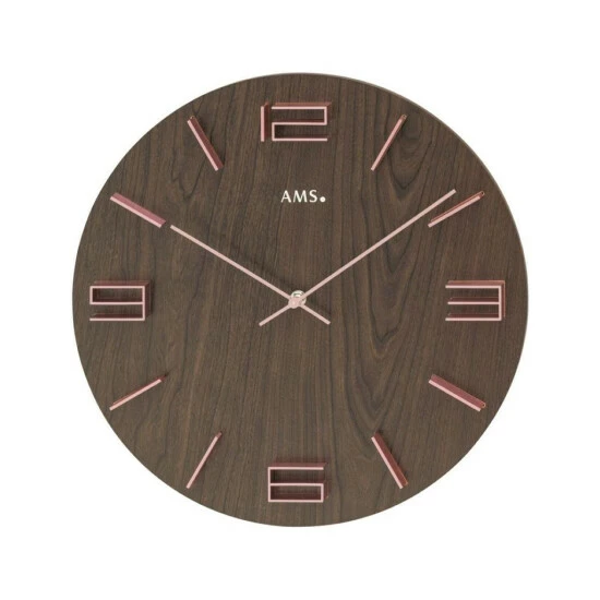 AMS 9591 Wanduhr Quarz analog nussbaum farben mit rosa