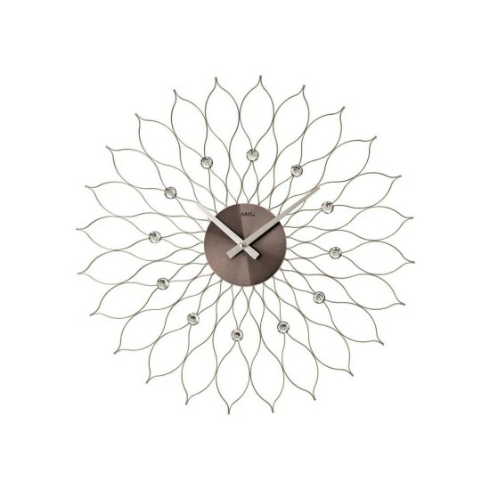 Quarz-Wanduhr, Metallgehäuse silberfarben mit geschliffenen Steinen in Glas-Optik, Zeiger silberfarben, Durchmesser ca. 50 cm, Tiefe ca. 5 cm, Gewicht ca. 800,0 g