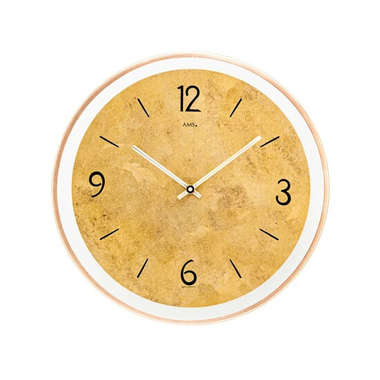 Quarz-Wanduhr, Holzzifferblatt messingfarben antik hinter Mineralglas, Aluminium-Frontring messingfarben, Strichskala und arabische Zahlen schwarz, Zeiger messingfarben, Durchmesser ca. 40 cm, Tiefe ca. 3 cm, Gewicht ca. 1300,0 g