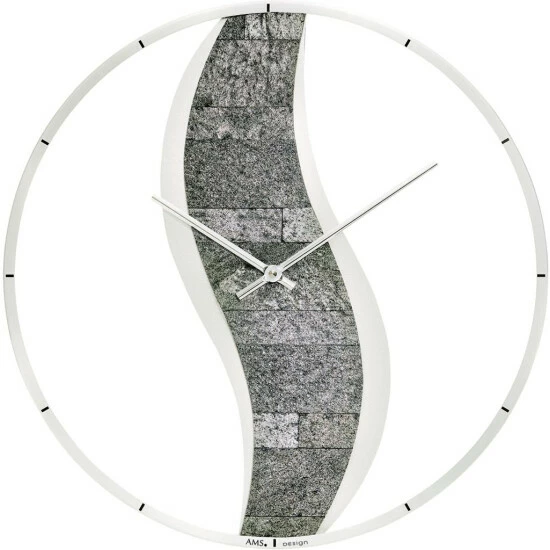 Quarz-Wanduhr, Holzrückwand silberfarben mit Stein-Auflage kombiniert, Aluminium-Ring mattiert, Strichskala schwarz, Zeiger silberfarben, Durchmesser ca. 40 cm, Tiefe ca. 5 cm, Gewicht ca. 450,0 g