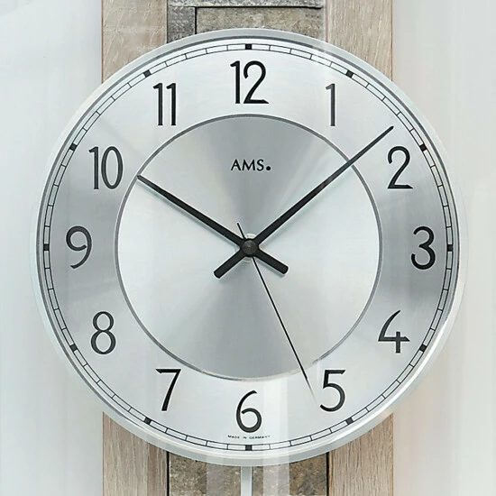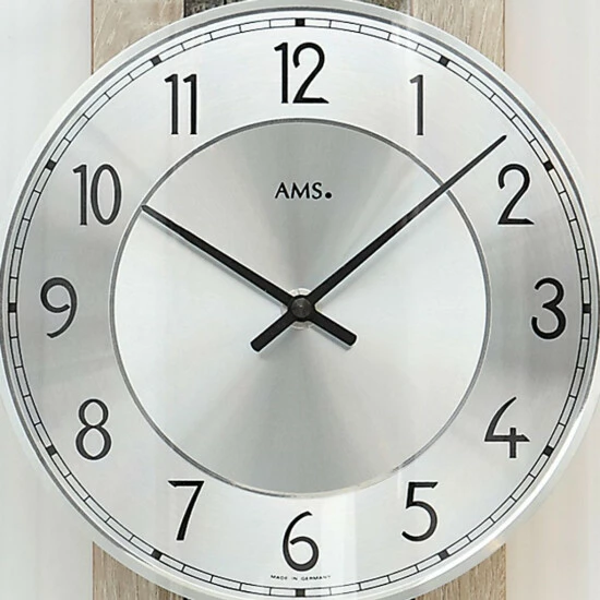 AMS 5224 Wanduhr Funk Funkwanduhr mit Pendel Holz Sonoma Optik Pendeluhr Glas