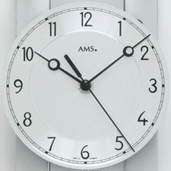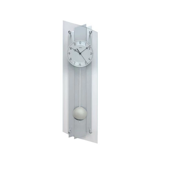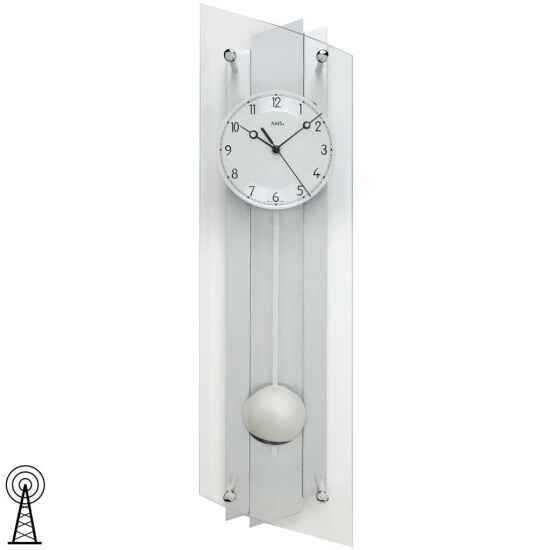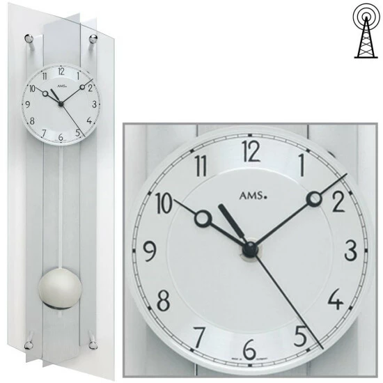 AMS 5261 Wanduhr Funk Funkwanduhr mit Pendel silbern Pendeluhr Glas Aluminium