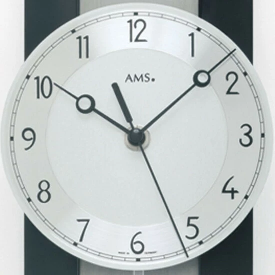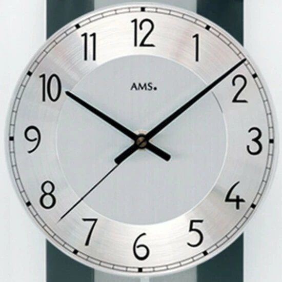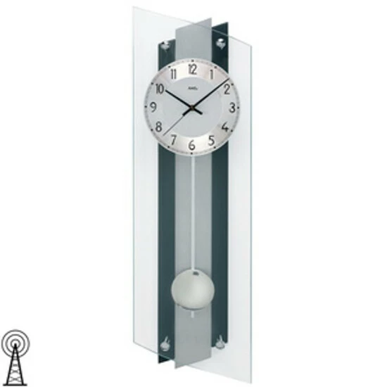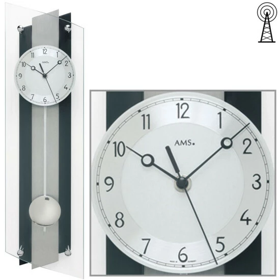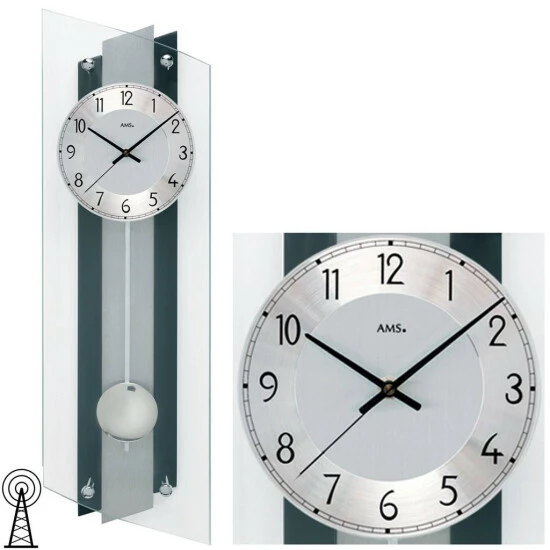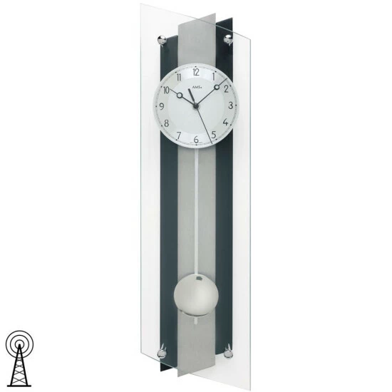 AMS 5262 Wanduhr Funk Funkwanduhr mit Pendel schwarz Pendeluhr Glas Aluminium