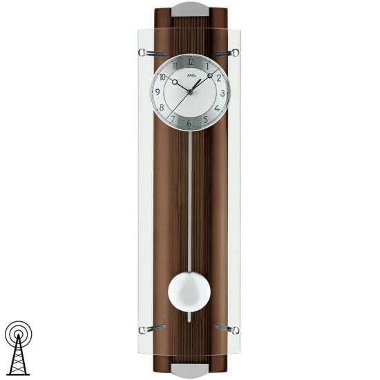 AMS 5259/1 Wanduhr Funk Funkwanduhr mit Pendel Holz nussbaum farben Pendeluhr