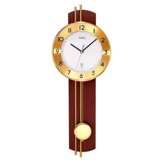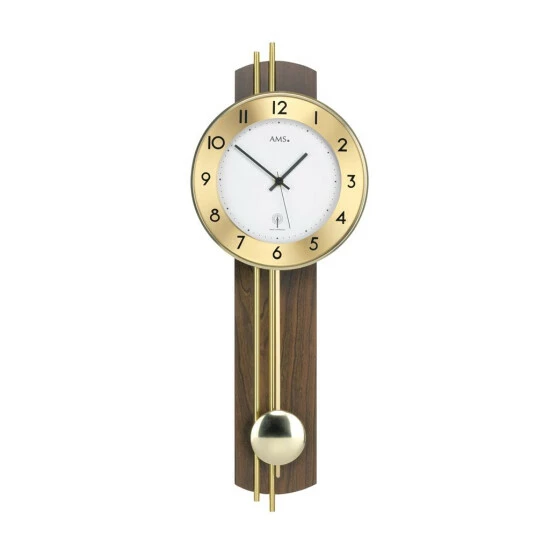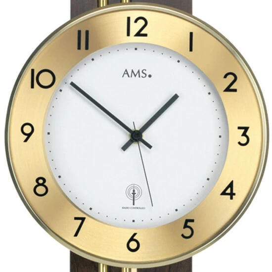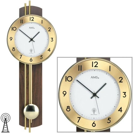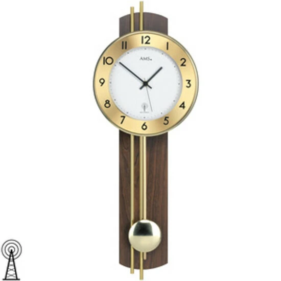 AMS 5266/1 Wanduhr Funk Funkwanduhr mit Pendel Holz nussbaum furniert Pendeluhr