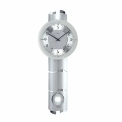 AMS 5215 Wanduhr Funk Funkwanduhr mit Pendel analog silbern Pendeluhr mit Glas