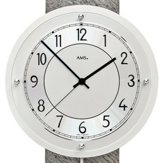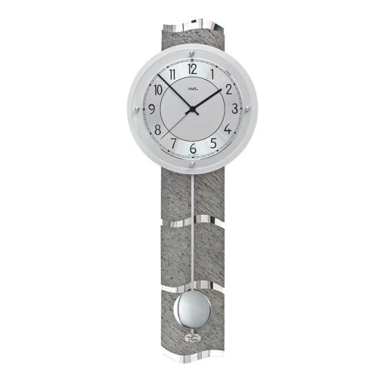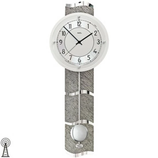 AMS 5216 Wanduhr Funk Funkwanduhr mit Pendel silbern Pendeluhr mit Stein Optik