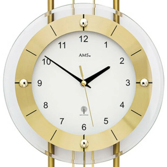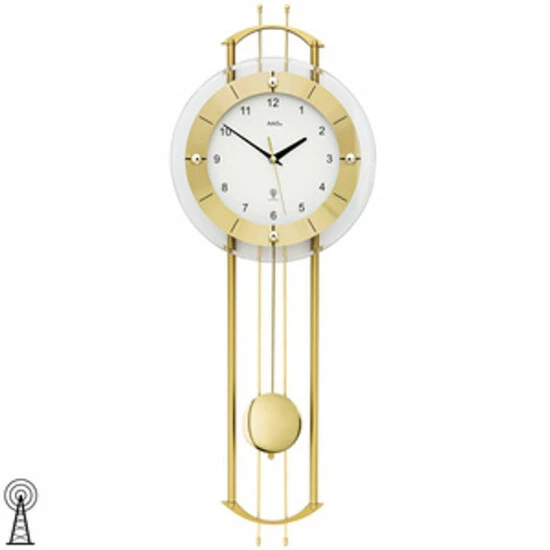 AMS 5257 Wanduhr Funk Funkwanduhr mit Pendel golden modern Pendeluhr mit Glas