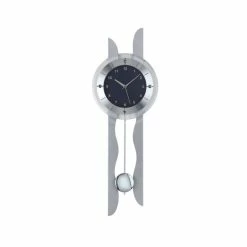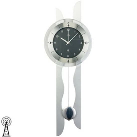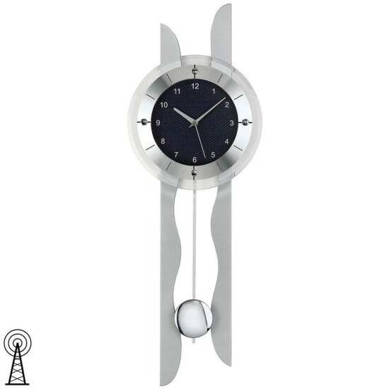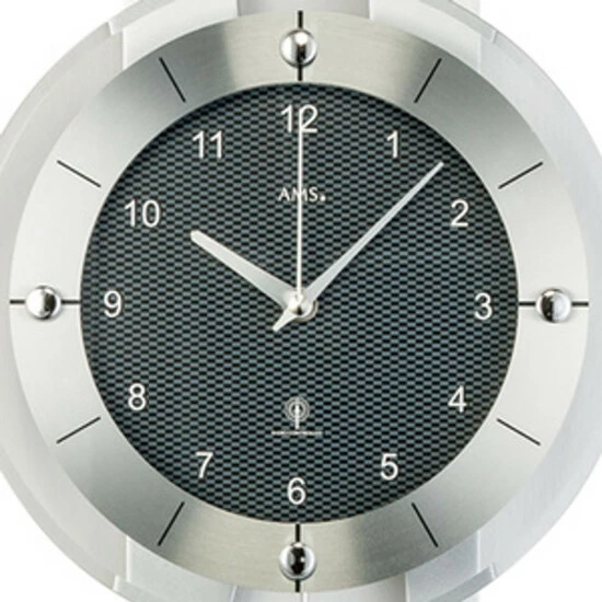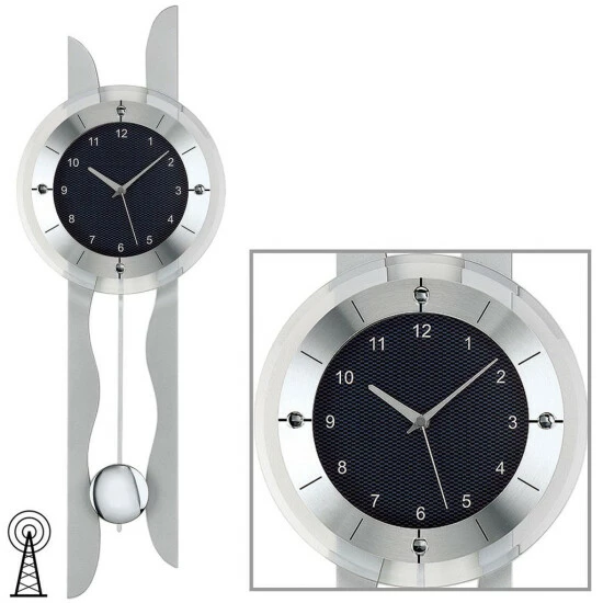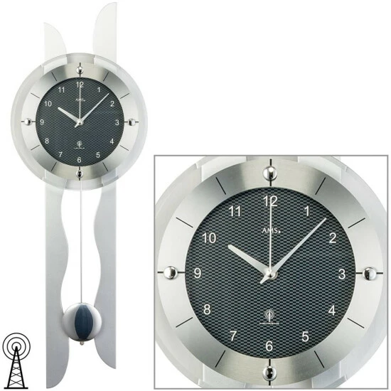 AMS 5243 Wanduhr Funk Funkwanduhr mit Pendel silbern Pendeluhr Carbon Optik