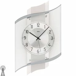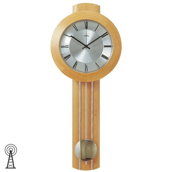 Pendeluhr Funk AMS 5132/18 mit Funkpendelwerk, Massivholzgehäuse Buche, Aluminium-Zifferblatt, silberfarbenen Applikationen und Mineralglas