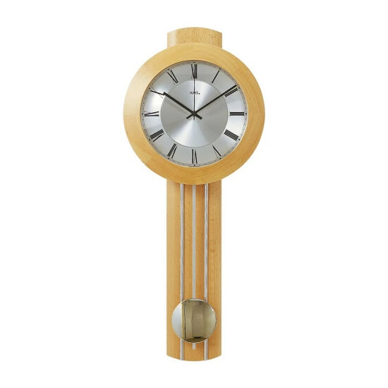 AMS 5132/18 Wanduhr Funk Funkwanduhr mit Pendel Holz Buche massiv Pendeluhr